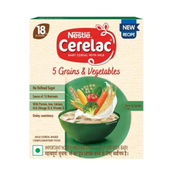 Nestle Cerelac 5 Grains & Vegetables Baby Cereal (No Refined Sugar, 18-24 Months)