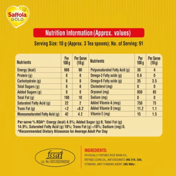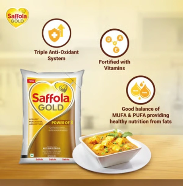 Saffola Gold Power of 3 Refined Blended Cooking Oil (1 ltr)