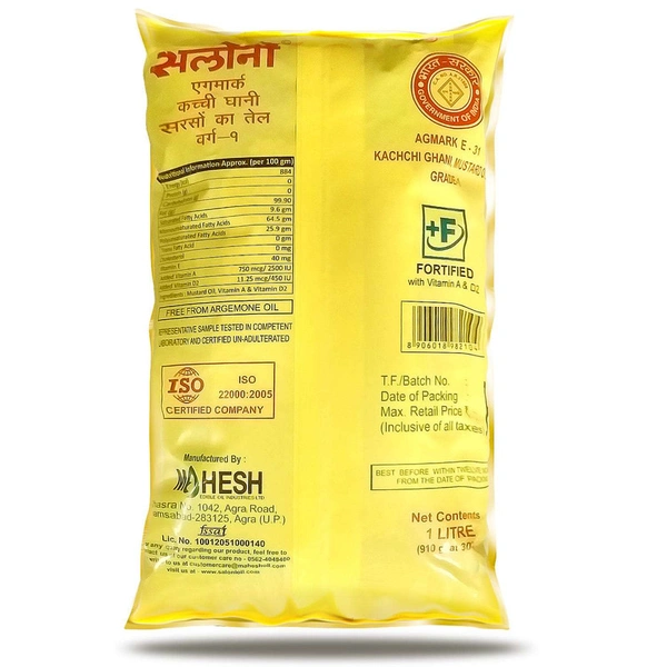Saloni Mustard Oil - 1 Lit Pouch